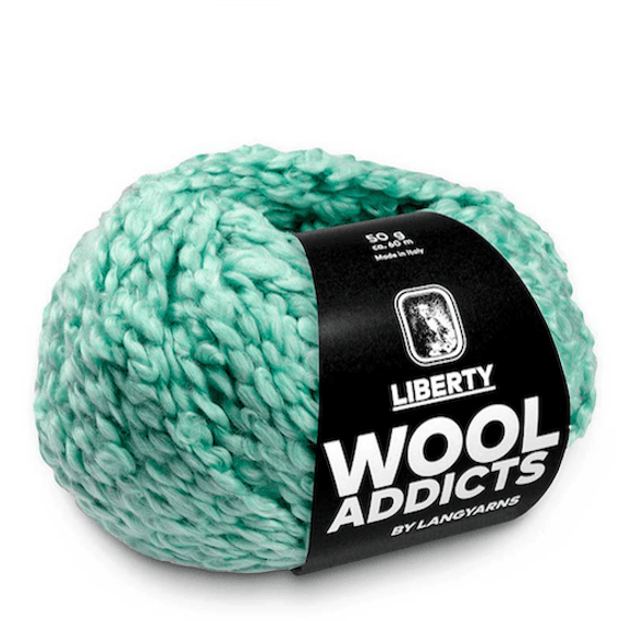 Wool Addicts Liberty is a supersoft 100% cotton chunky yarn that works up really fast, so it's cottony-cozy year-round! It's soft boucle look brings a unique style to even the simplest of patterns. It is perfect for garments and accessories . 50 gr balls with 60 metres per ball. Mach wash. 6mm needles