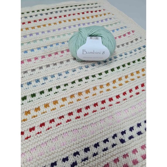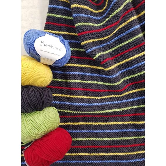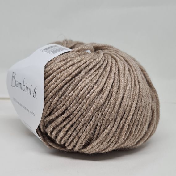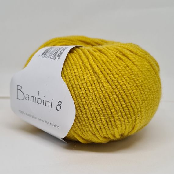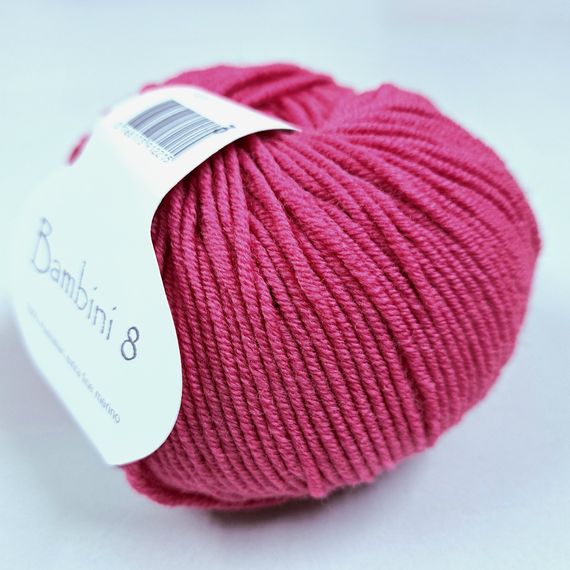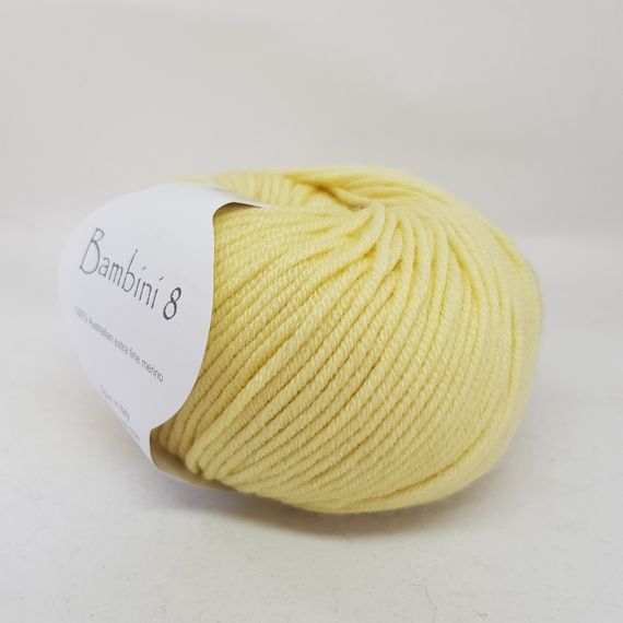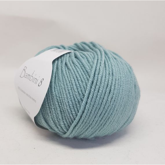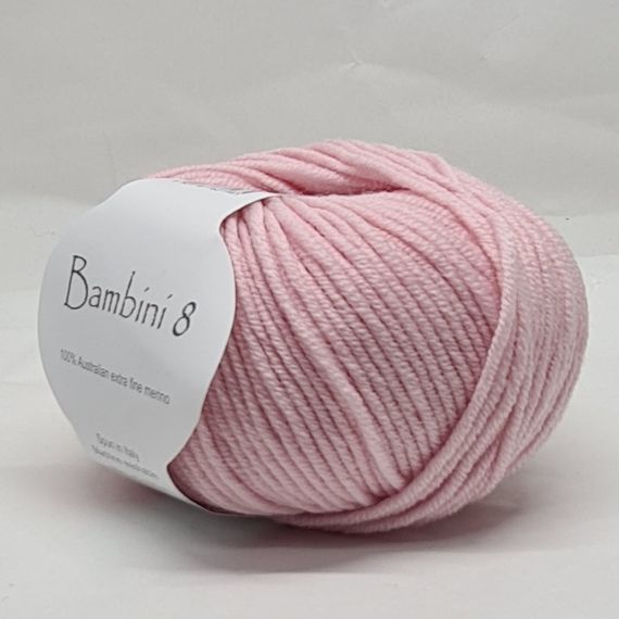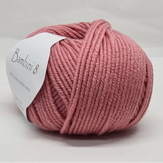 Bambini 8 - a stunning 8 ply Australian extra fine merino, spun in Italy. 50 gr balls - 115 metres. 4 mm needle.
