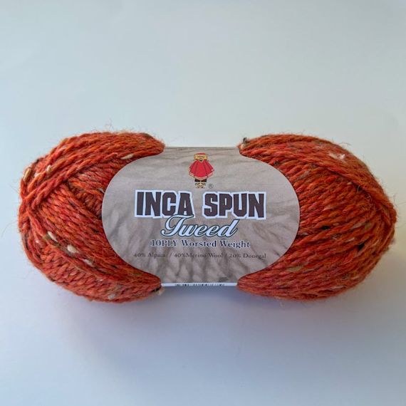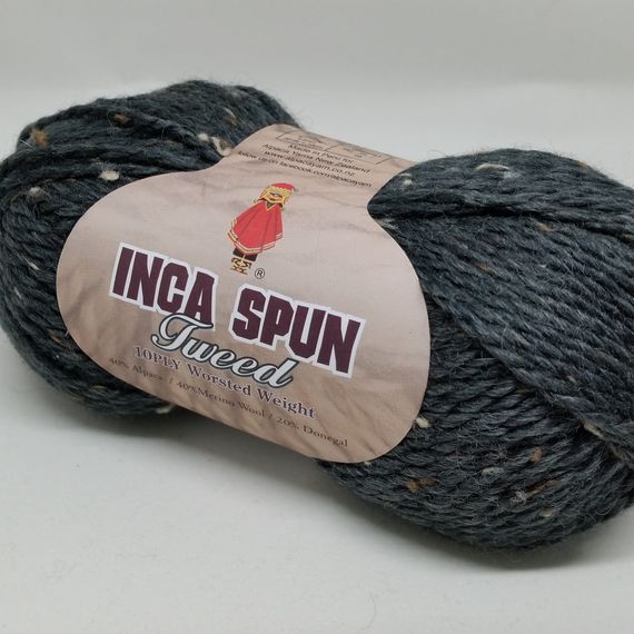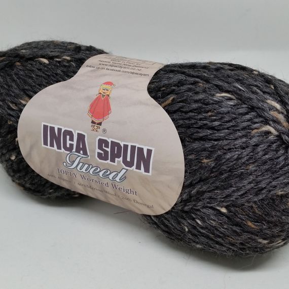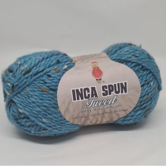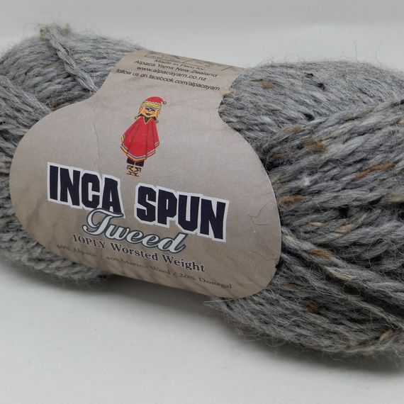 Inca Spun Tweed 10Ply Worsted weight. Beautifully soft alpaca blend yarn with soft donegal tweed - 40% Alpaca, 40% Fine Merino, 20% Irish Donegal Tweed, use 4.5mm needles, 100 meters per ball.