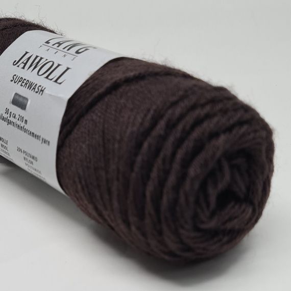 Lang Jawoll superwash - 75% wool / 25% nylon in solid colours, comes in a 50 gr ball with 210 metres per ball. Also contains a matching colour spool of nylon in the centre of the ball for extra reinforcement. Perfect solid colours for socks, babies, scarves and beanies or just for heels and toes. Superwash. Needle rec.2.5 - 3.5mm.