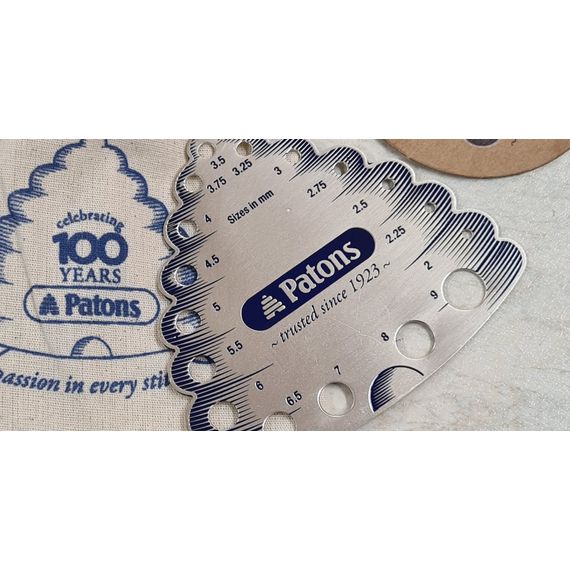 This Limited edition commemorative tin from Patons to celebrate 100 years will be a lovely collectable. It comes complete with a beehive needle gauge for metric and imperial sizes, Patons branded tape measure, folding rose gold scissors, stitch markers and wool needle.