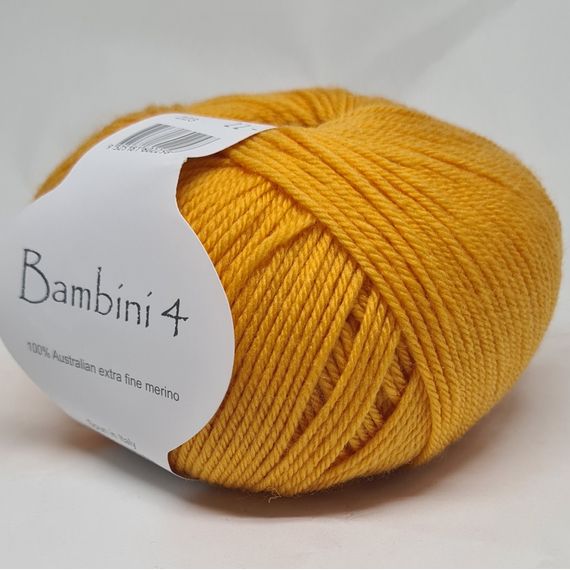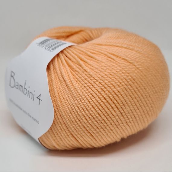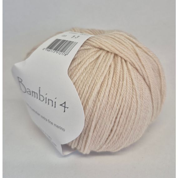 Bambini 4 from Prestige Yarns. Stunning quality without the high price tag. Australian extra fine merino and spun in Italy. 50 gr balls with 200 metres per ball. Machine wash. Needle rec. 2.75 to 3.25 mm.