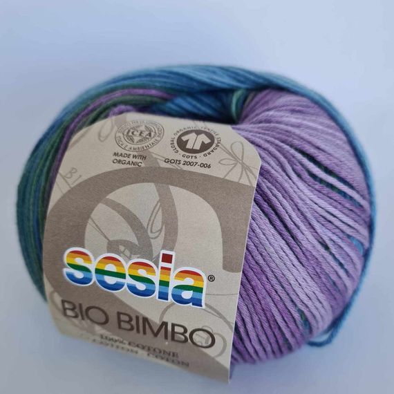 Sesia Bio Bimbo is a beautiful 100% Organic combed 4 ply cotton, perfect for babies and children. 50 gr balls - 180 metres per ball. Made in Italy.Needle rec. - 2.5 - 3 mm. Machine wash.