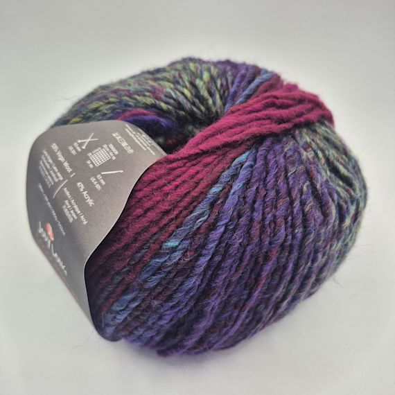 Colourspun from Jody Long is a 12 ply self striping easy care wool blend - 53% virgin wool / 47% Acrylic. Dyed & Spun in Italy. Wool ethically grown and harvested in South America. 100 gr balls - 189 metres per ball! Machine wash. 6.5 mm needle or hook.
