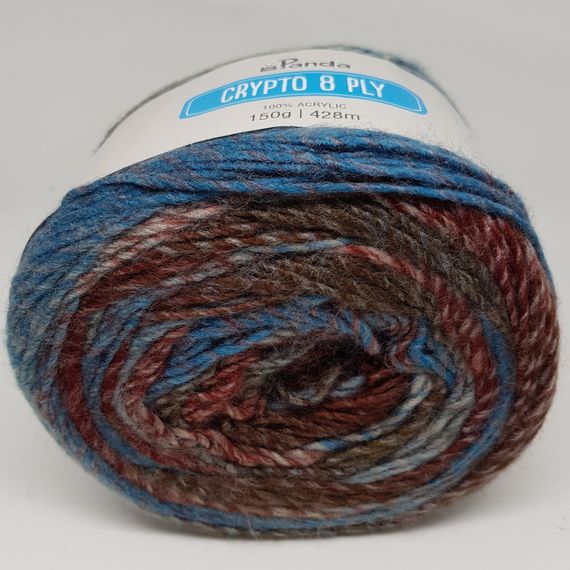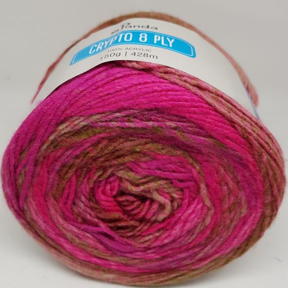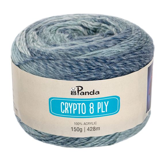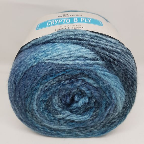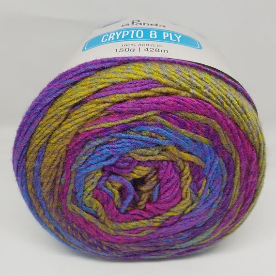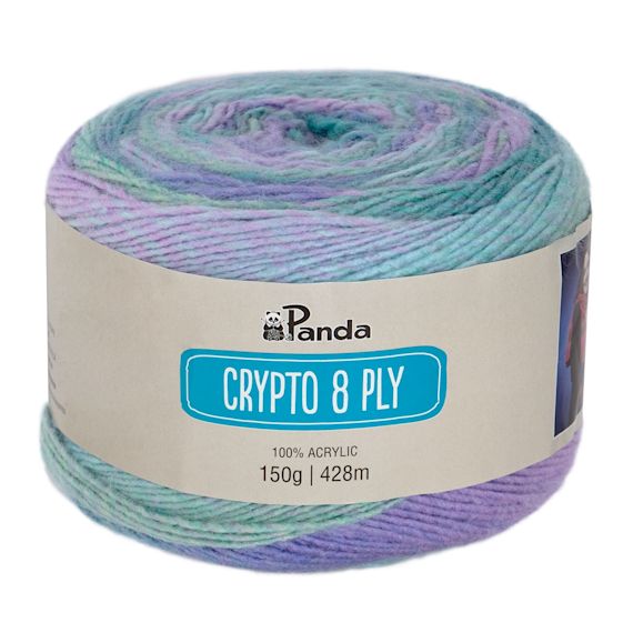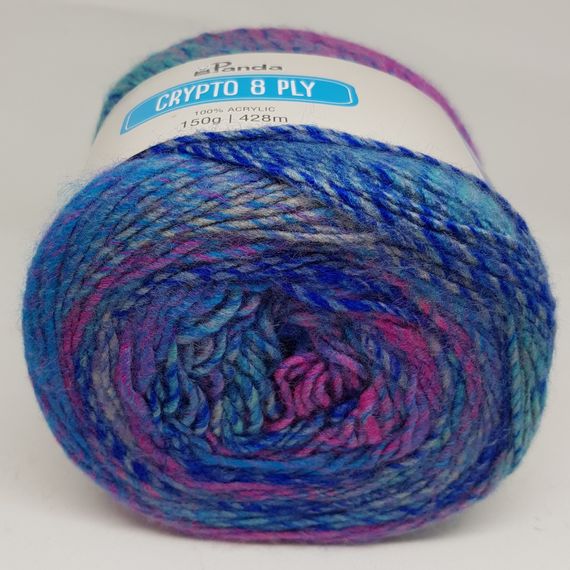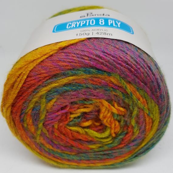 Fantastic fun range - Panda Crypto. 8 ply multi coloured - So fun and squishy, Crypto cakes by Panda will quickly get your creative projects buzzing with colour. 100% Acrylic. 150 grams - 428 metres. 4 mm needles.