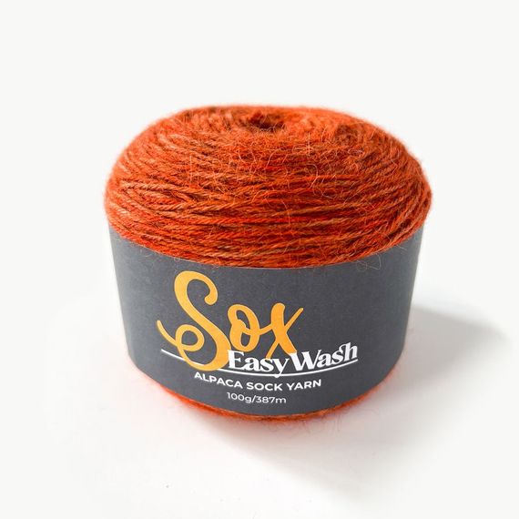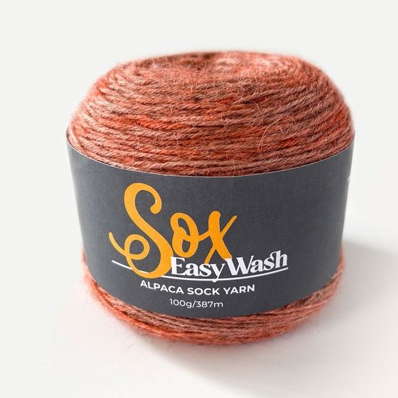 Alpaca Sox Kettle dyed sock wool. 100 gram balls - 387 metres. 70% alpaca and 30% nylon. Machine washable. 2.5 - 3 mm needle. Made in Peru