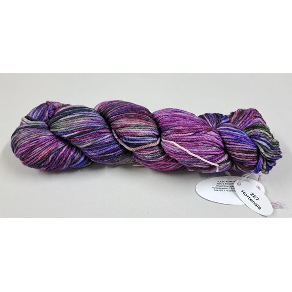 FIORI DK IV Hand dyed from Prestige Yarns. A beautiful 100% Australian Extra fine Merino hand dyed yarn. Machine washable. 100 grams - 200 metres per skein. 4 mm needles.