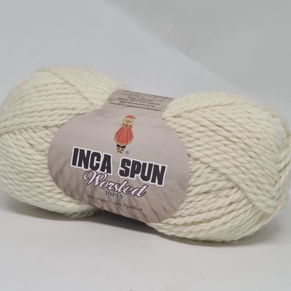 Inca Spun worsted is a 10 ply 50% wool / 50% alpaca blend. 50 gr - 100 metres.