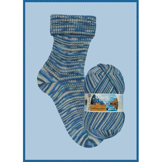 Lieblingsplatz translates to Favourite Place. This range from Opal is as always stunning colourways and a quality sock yarn. 100grs - 425 mts. 75% wool/25% nylon. Needle rec. 2.5 mm. Made in Germany.