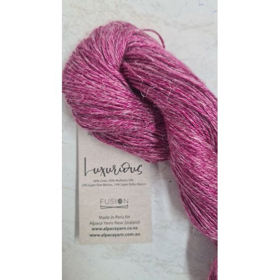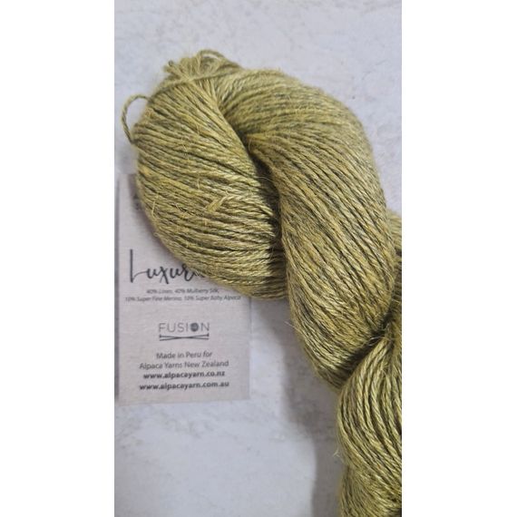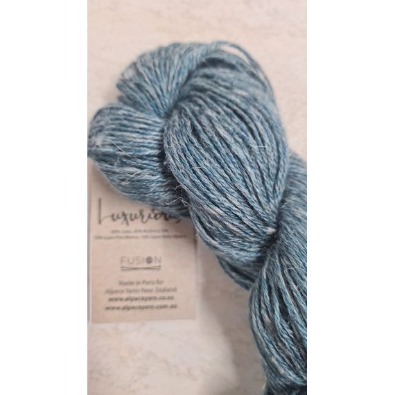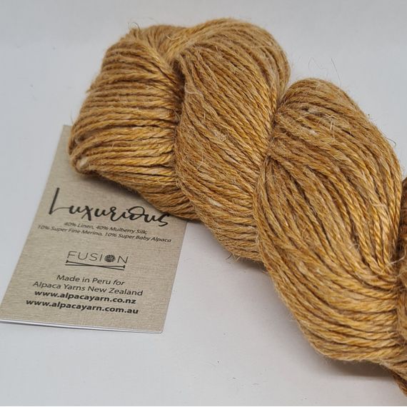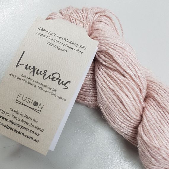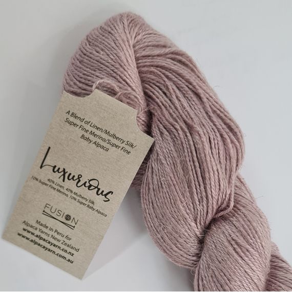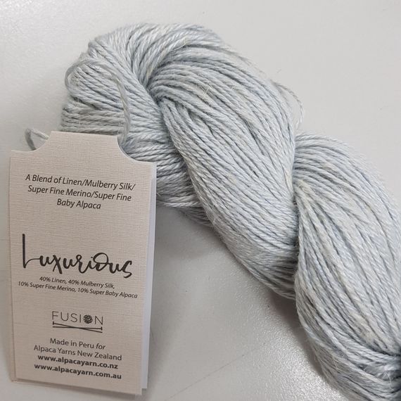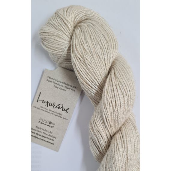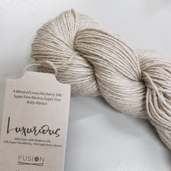 Luxurious Fusion is a stunning 4 ply yarn made up of 40% linen, 40% Mulberry silk, 10% superfine merino and 10% super fine baby alpaca. For those very special projects. 50 gr skeins with 166 metres. Needle rec. 3.25 mm. Hand washable.