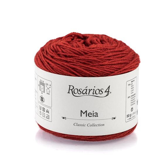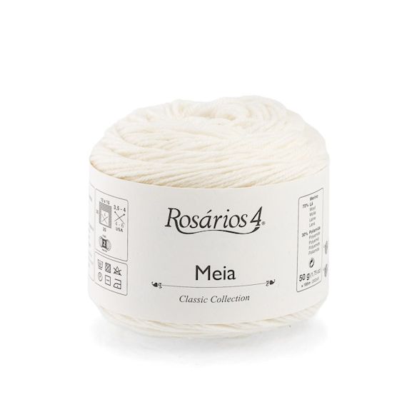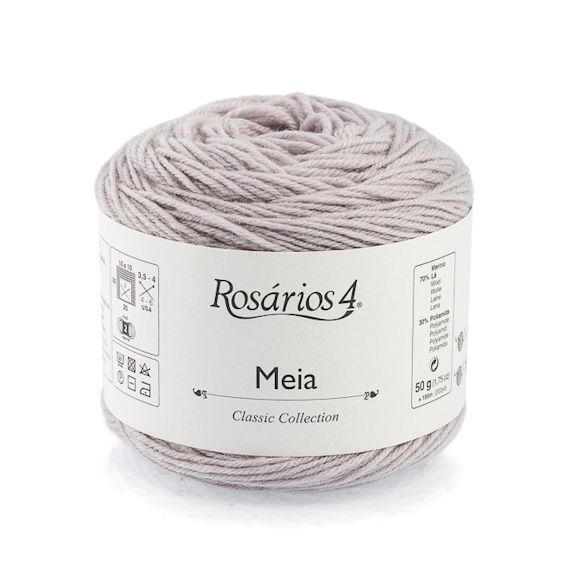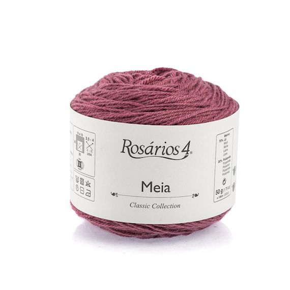 Rosarios 4 Meia is their classic super soft 4 ply merino blend in solid colours. Perfect for baby garments and socks. 70% merino/30% nylon. 50 gr balls - 185 metres per ball.