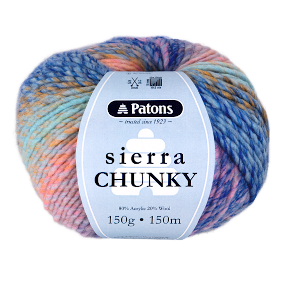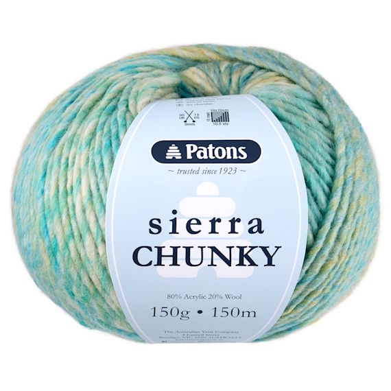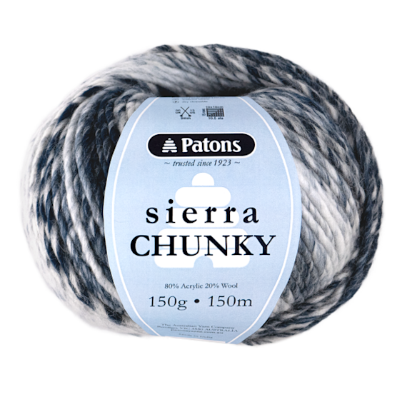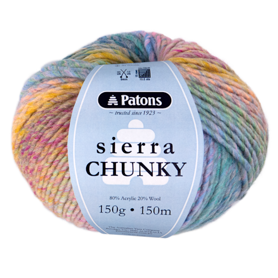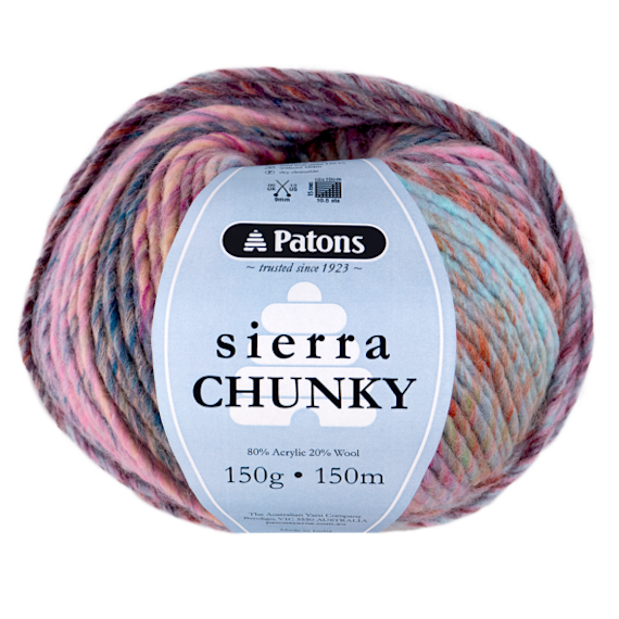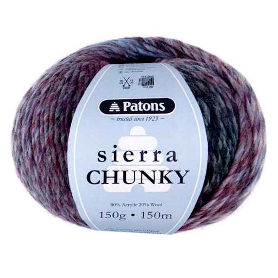 NEW Sierra Chunky - a fantastic chunky version of the ever popular Sierra. Big 150 gram balls with 150 metres per ball. Needle rec. 9 mm. Tension 15 rows to 10.5 sts. Machine washable. Perfect for throw rugs or garments. Free pattern for the Emotion throw available. Download at Australian Yarn company or ask for a copy with your order (mention in the comments box at checkout)